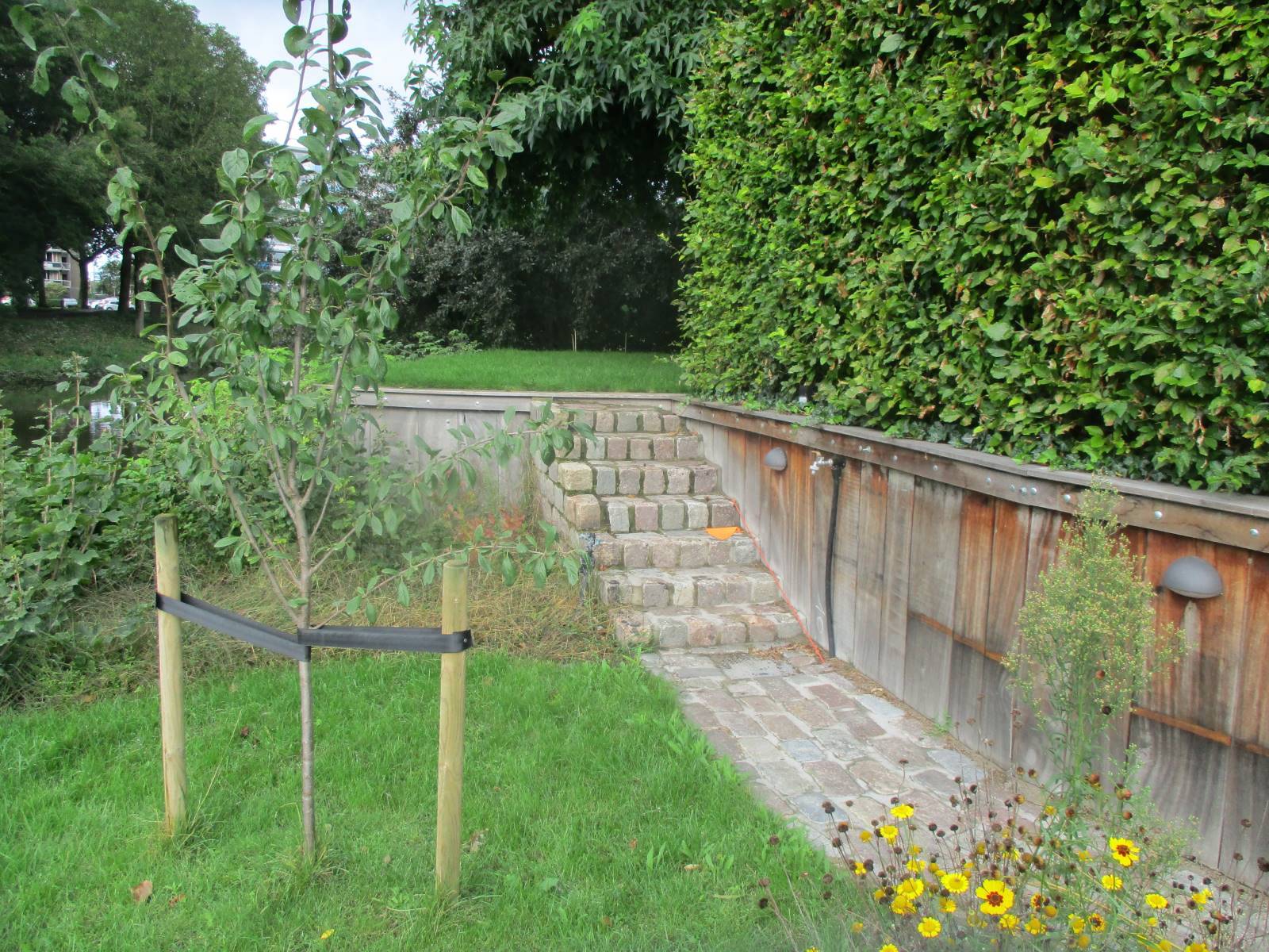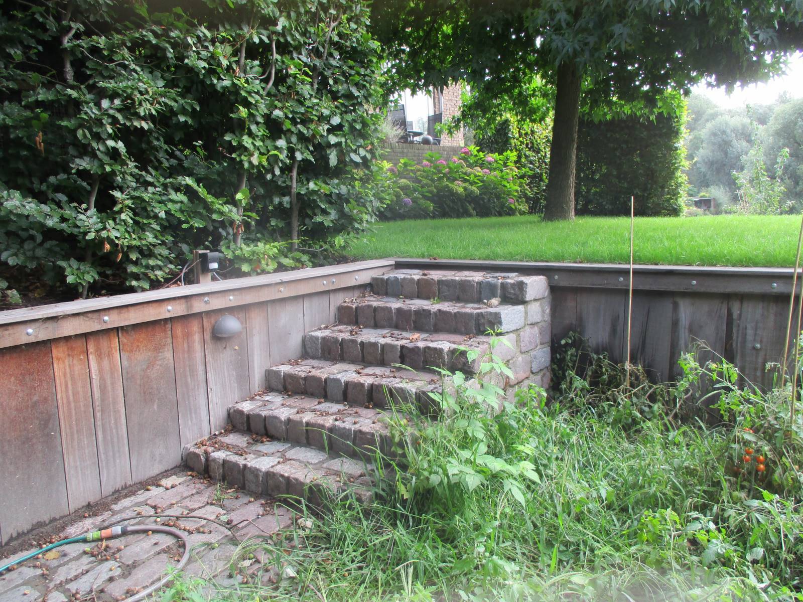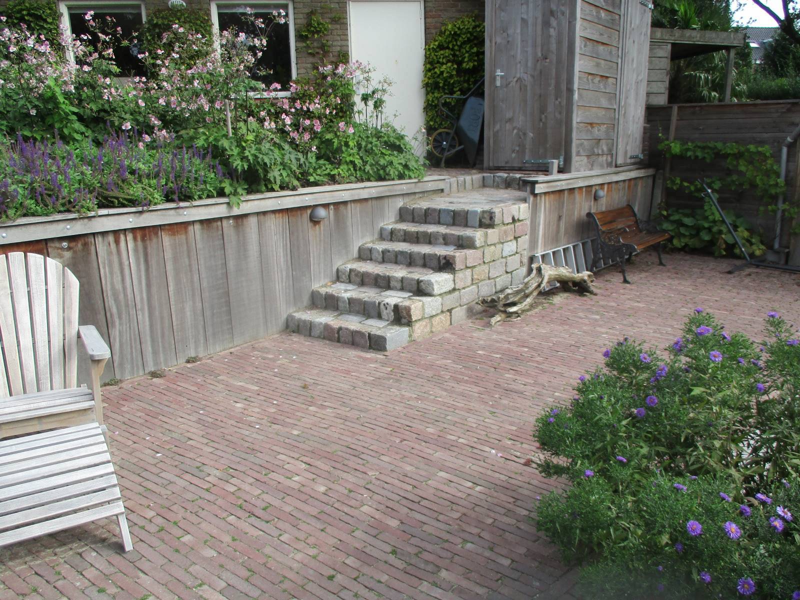 Trappen met zweeds graniet en terrassen met gebakken klinkers.